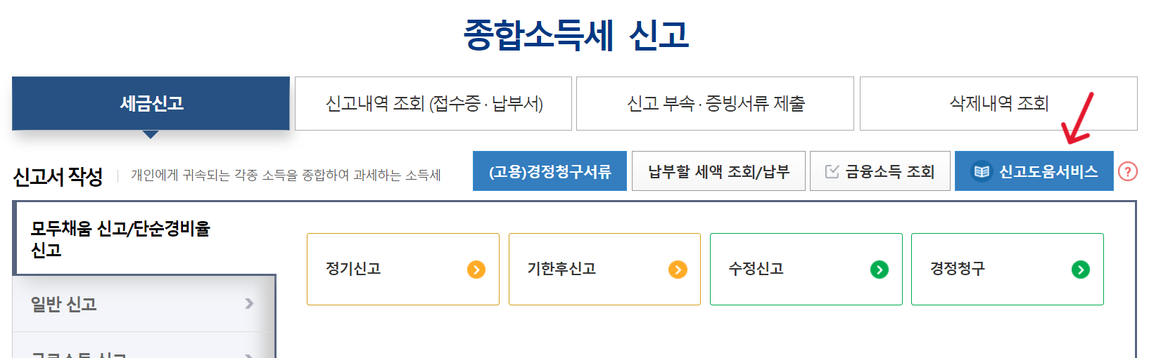 이제 신고도움서비스를 확인해 볼 차례입니다