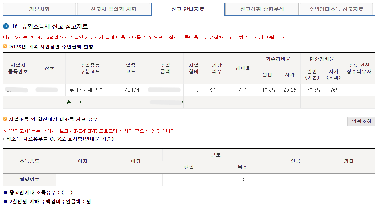 1. 종합소득세 신고도움서비스 확인하는 방법